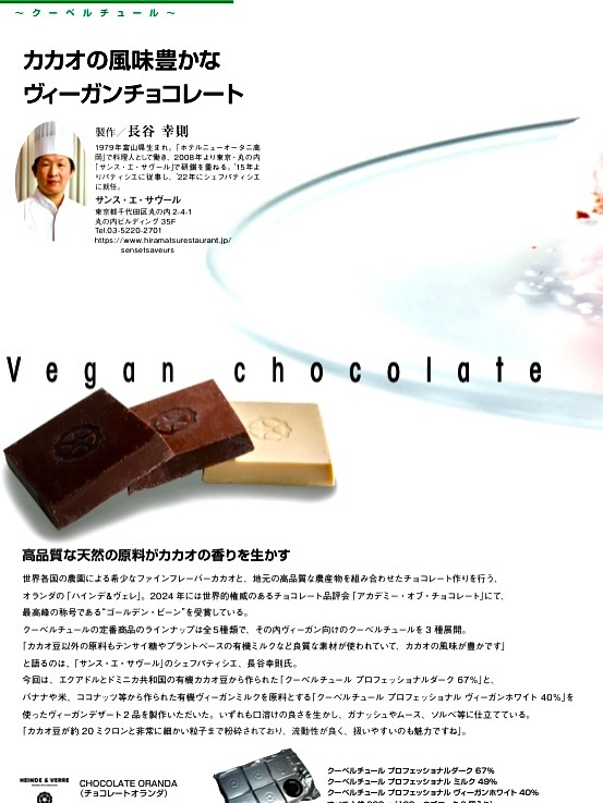 東京丸の内のフレンチレストラン『Sens et Saveurs』さんとのタイアップで、弊社のヴィーガン対応のクーベルチュールをお使い頂きました。